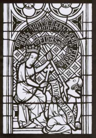 16 planches sur papier translucide, à colorier, basés sur des détails de vitraux de grandes cathédrales de France, Allemagne, Autriche et Grande-Bretagne.